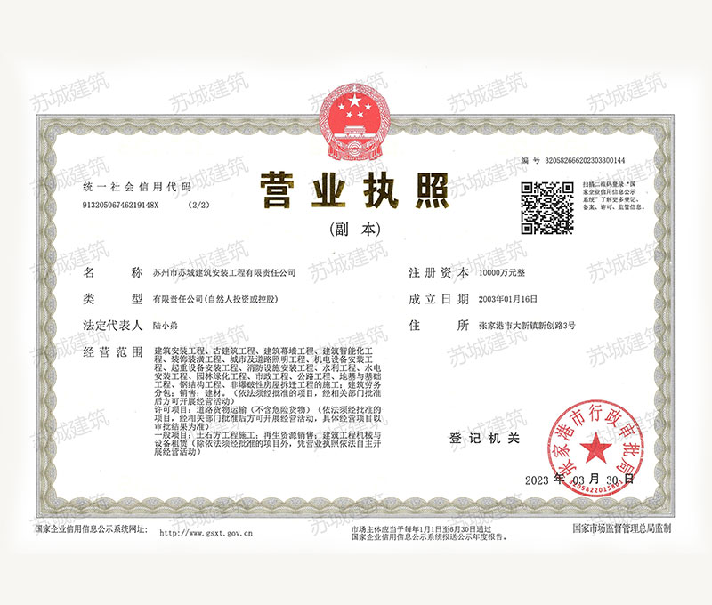 裝飾工程專業(yè)承包二級(jí)資質(zhì)。公司注冊(cè)資本壹億元人民幣,經(jīng)營(yíng)范圍涉及房屋建筑施工與安裝、古建筑工程、建筑幕墻工程、建筑智能化